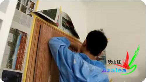 用美纹纸和旧报纸对周围墙壁进行遮蔽。